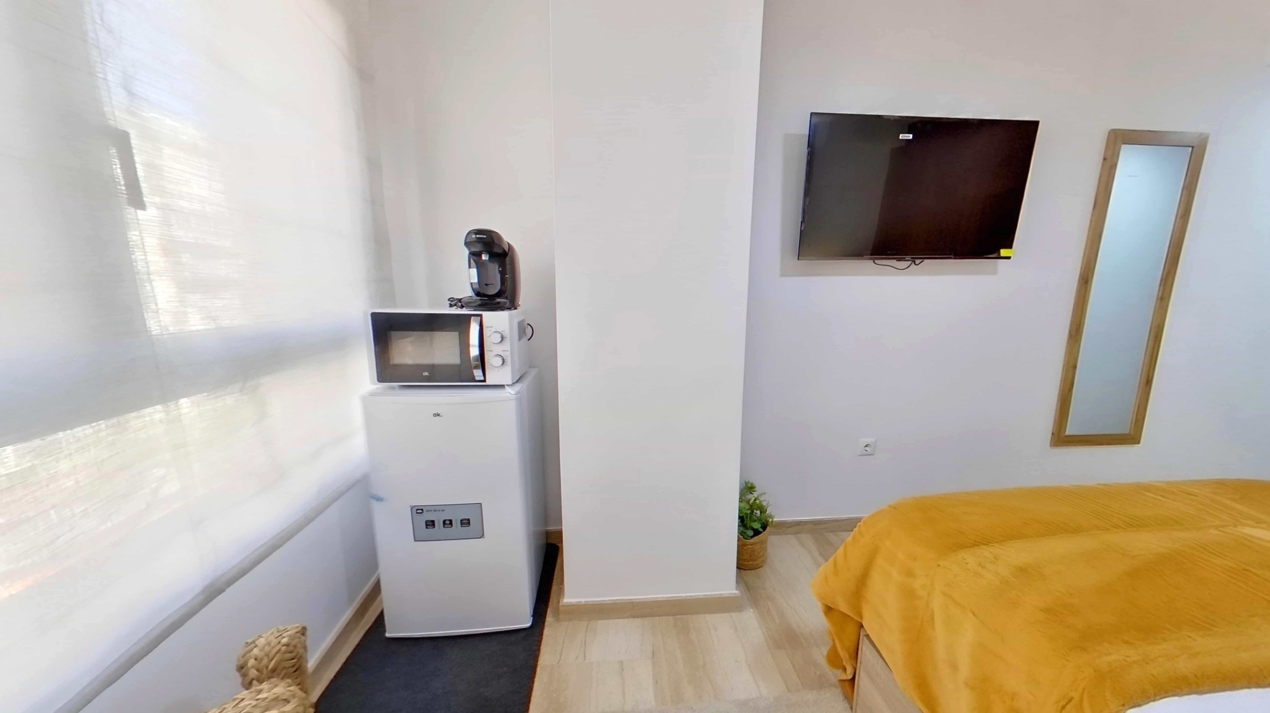 Un aspecto destacado de todas las habitaciones es que todas están equipadas con frigorífico, microondas, cafetera y TV, lo que proporciona una gran comodidad y autonomía para sus residentes. Además, todas las habitaciones son de matrimonio, especialmente pensadas y preparadas para parejas, ofreciendo un espacio cómodo y acogedor para disfrutar de una estancia agradable en Alicante.