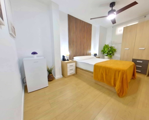 En casi todas nuestras habitaciones como mínimo encontrarás una cama muy cómoda, armarios roperos, mesitas de noche con cajoneras y lámpara, ventilador con luz led en el techo, un frigorífico, microondas, cafetera y Televisión.